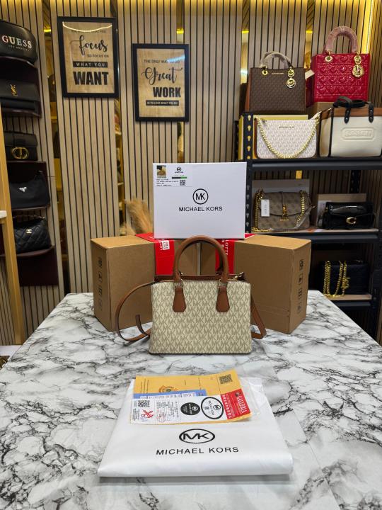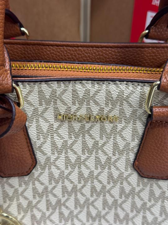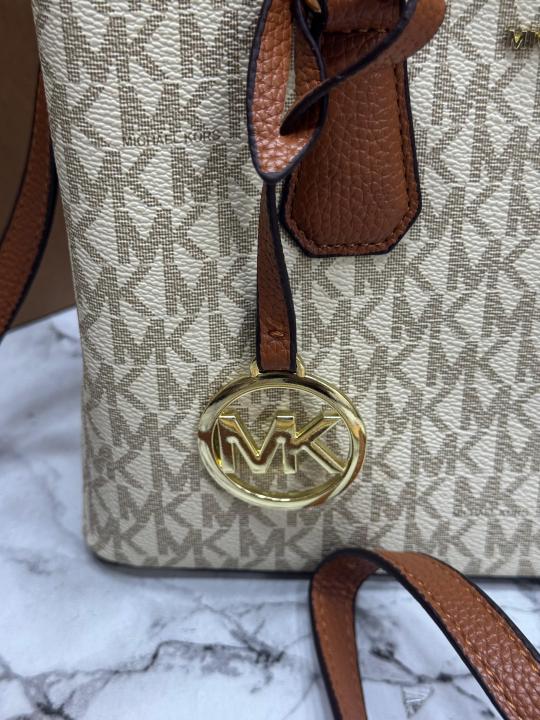 Michael_Kors Camille Satchel Hand Bag In Signature logo-print Canvas With Double Og Box And Dust Bag (Beige)