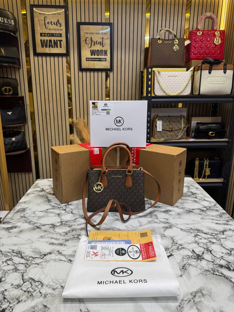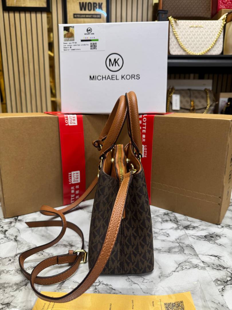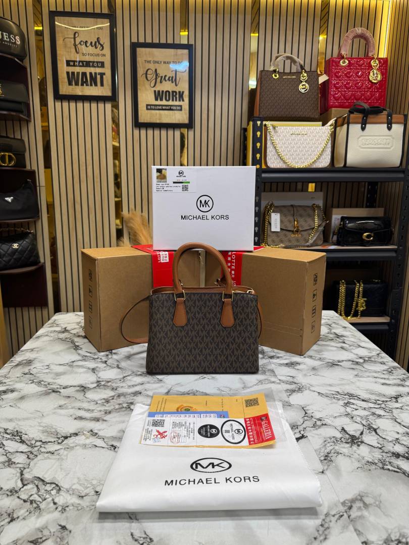 Michael_Kors Camille Satchel Hand Bag In Signature logo-print Canvas With Double Og Box And Dust Bag (Brown)