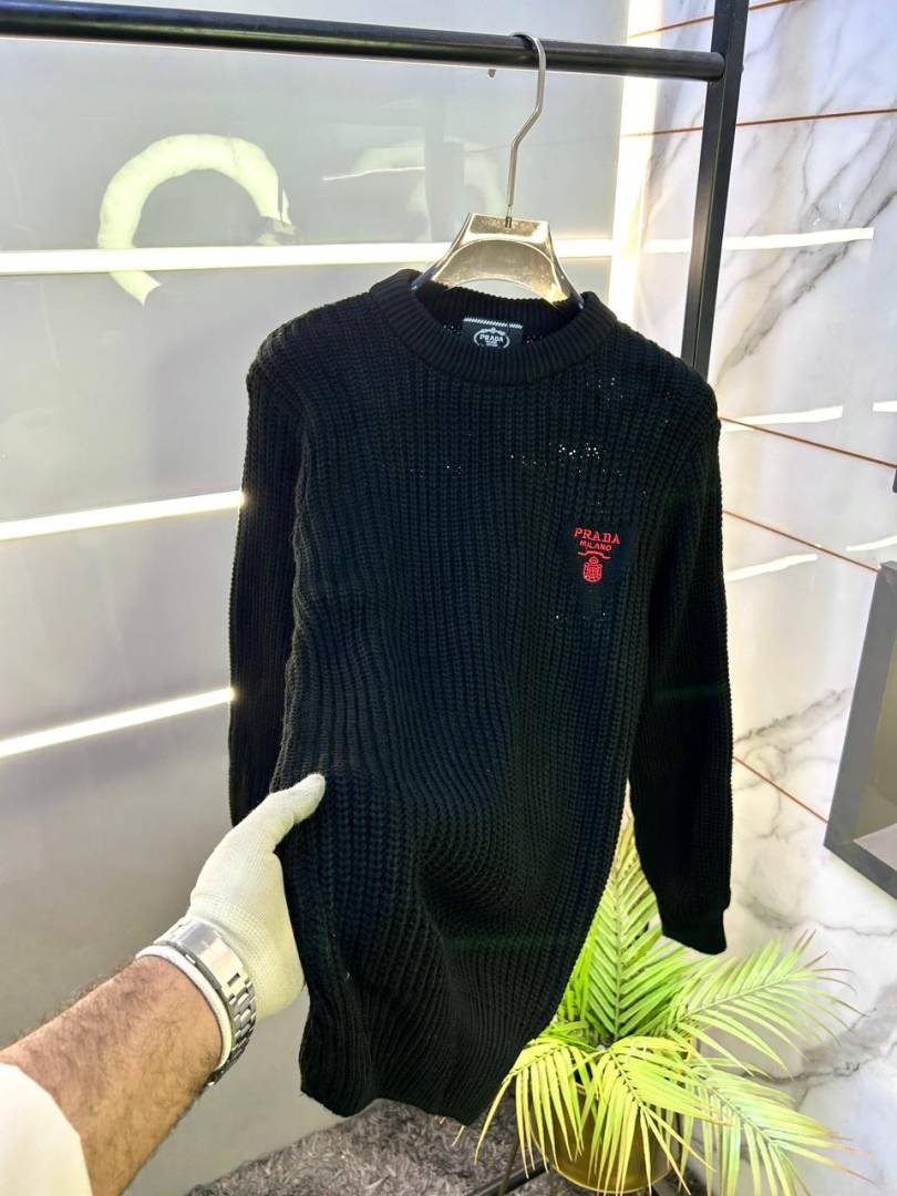 Prad a Milano Imported Black Embroidery Logo Premium Pullover F3329-BL